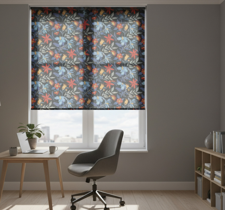 Tenda a rullo per ufficio stampa floreale 'tricot' nera