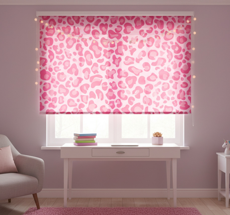 Tenda a rullo rosa a fantasia leopardata