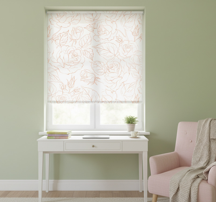 Tenda a rullo rosa con delicati motivi floreali