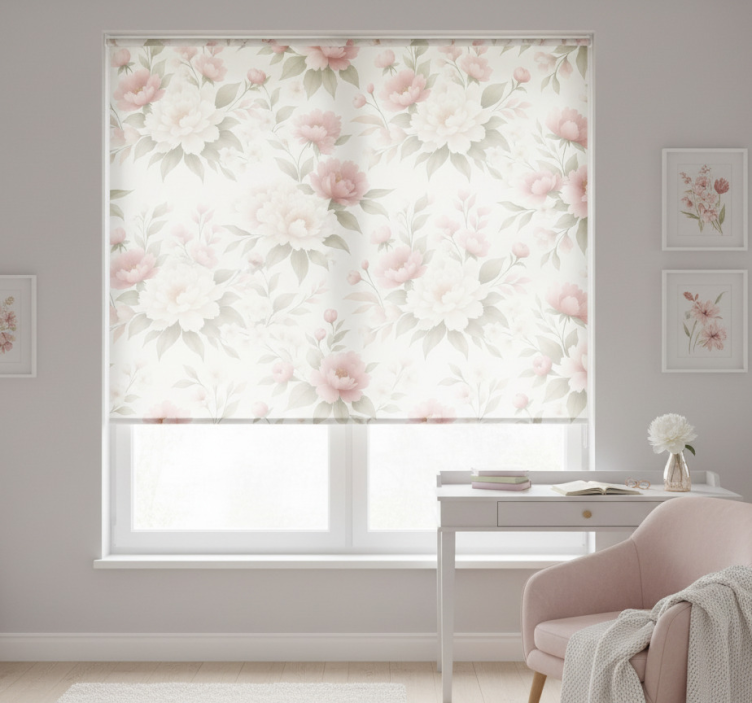 Tenda a rullo rosa peonia rosa bianca floreale