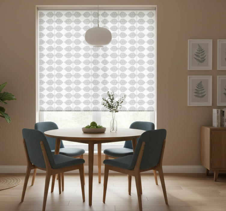 Tenda a rullo sala da pranzo composizione foglie eleganti