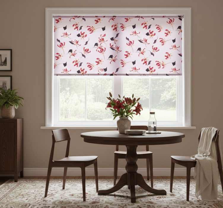 Tenda a rullo sala da pranzo design floreale giglio rosso