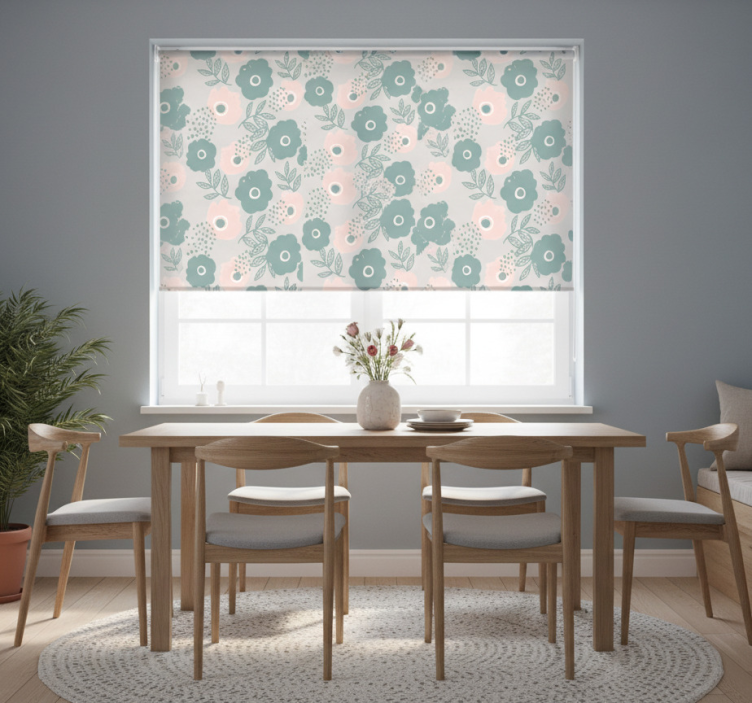 Tenda a rullo sala da pranzo fiori acquerello rosa e blu
