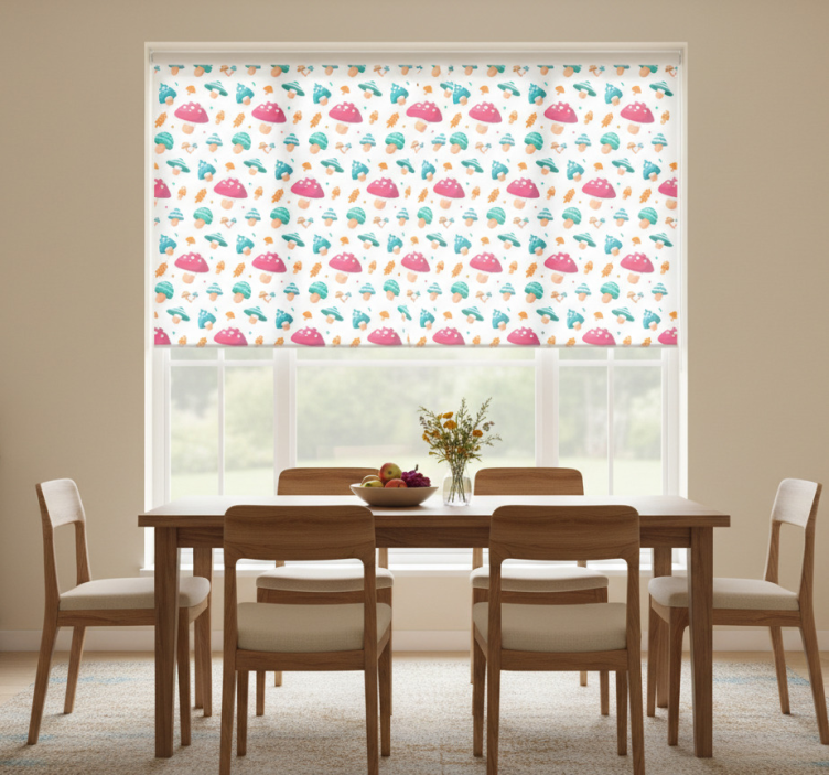 Tenda a rullo sala da pranzo funghi multicolore