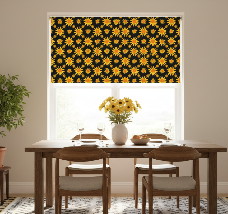 Tenda a rullo sala da pranzo girasole su sfondo nero