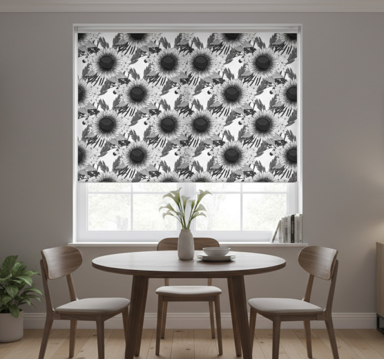Tenda a rullo sala da pranzo girasoli bianchi e neri