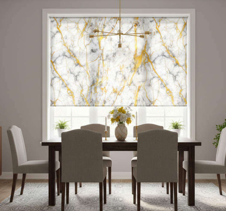 Tenda a rullo sala da pranzo marmo grigio e oro elegante