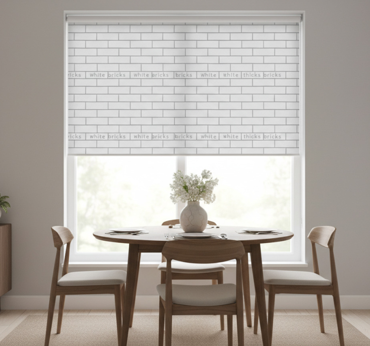 Tenda a rullo sala da pranzo mattoni bianchi spessi