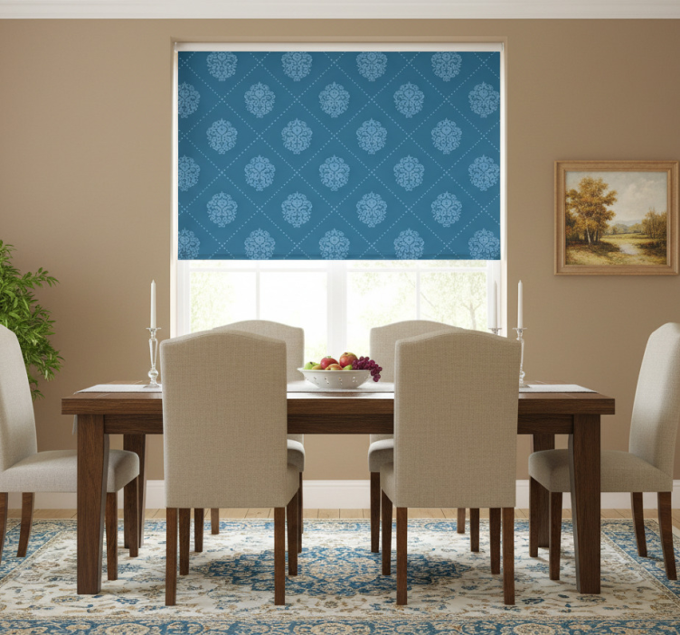 Tenda a rullo sala da pranzo motivo diamantato floreale