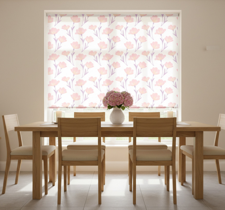 Tenda a rullo sala da pranzo motivo fiori selvatici acquerello