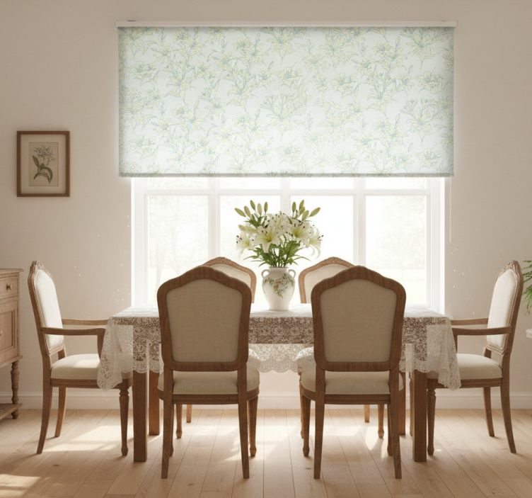 Tenda a rullo sala da pranzo motivo floreale vintage