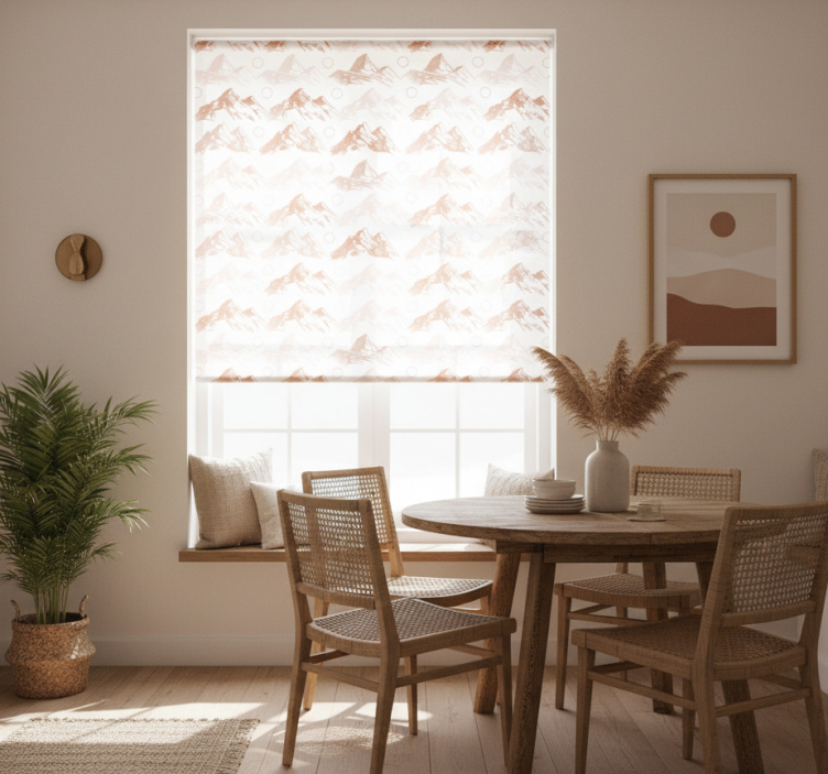 Tenda a rullo sala da pranzo motivo montagne terracotta
