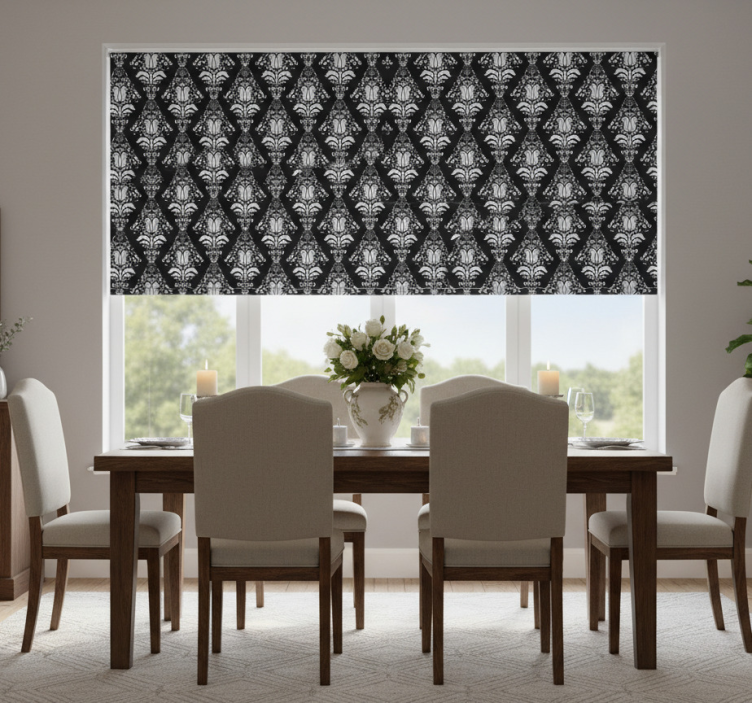 Tenda a rullo sala da pranzo motivo provenzale bianco e nero