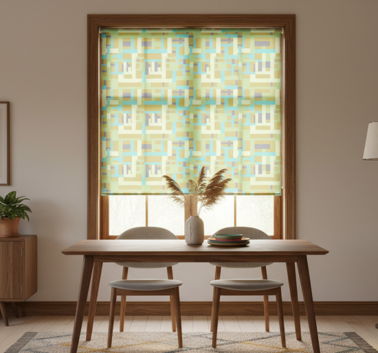 Tenda a rullo sala da pranzo motivo rettangolo colorato