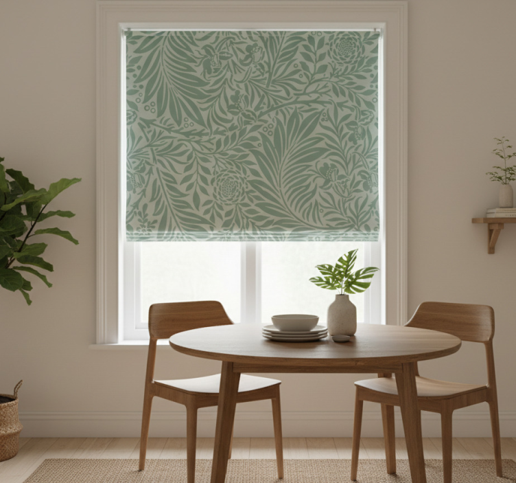 Tenda a rullo sala da pranzo motivo vintage verde menta