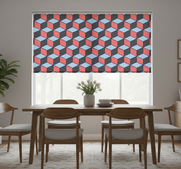 Tenda a rullo sala da pranzo quadrati geometrici 3d