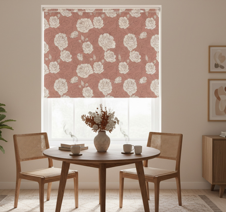 Tenda a rullo sala da pranzo rose grandi terracotta
