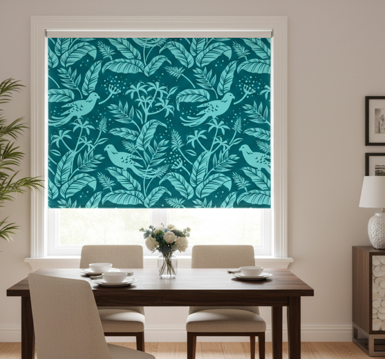 Tenda a rullo sala da pranzo uccelli volanti turchesi