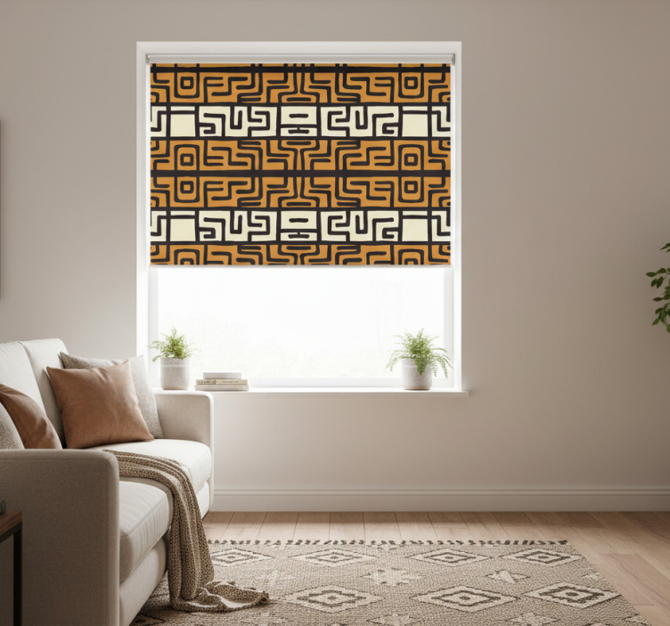 Tenda a rullo soggiorno arte astratta stile africano marrone